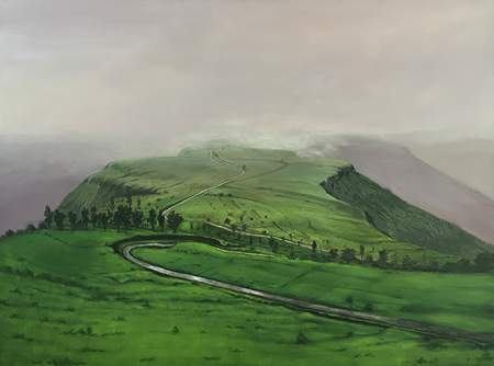 His visual compositions, enriched by organic forms and patterns, depict landscapes resembling vast gardens or boundless carpets of infinite nature. The horizontal elements in his art evoke tranquility, while the interplay of the skies, waters, and earthy tones—textured and rugged—convey a profound connection to the primal landscape. The velvety greens, subtle hues, and tactile depth come together to create an immersive sensory experience, transporting viewers to a state of cosmic sensitivity. This transcendent moment, akin to an axis or pivotal instant, unfolds through Ramdas’s artistic vision, leaving the viewer profoundly affected.