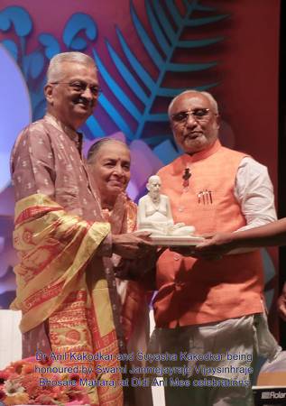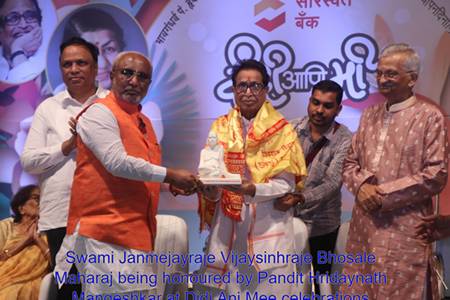 इसी दौरान अक्कलकोट के स्वामी जंजमेयराजे विजयसिंहराजे भोसले महाराज ने विनम्रता से कहा —“आज यहां उपस्थित होना मेरे लिए आशीर्वाद के समान है। मंगेशकर जैसे महान परिवार का स्नेह और आशीर्वाद प्राप्त करना मेरे लिए सम्मान है।”उनके यह शब्द आशीर्वाद नहीं, विनम्रता से झुका हुआ मस्तक थे।