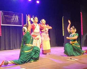 The momentum for the celebration was set by Bharata College of Fine Arts & Culture , the founder Principal of which is Dr Sandhya Purecha ,Chairman, Sangeet Natak Akademi. ‘Swarajya’ absolutely set the prelude to the exploration of SHAPATH . Vibrant and seasoned dancers Chitra Dalvi , Pushkar(Bharatanatyam ) Latasana Devi (.Manipuri) and the renowned Shubhada Varadkar also the choreographer (Odissi) brought to life the theme of ‘Swarajya’ . It was just the right start to compliment the Maharashtra Divas that at Mysore Auditorium , sought to celebrate the World Dance Day with a potent theme of ‘Shapath’ . ‘Swarajya’ highlighted the pledge of freedom taken by Bal shivaji to fight for freedom , to worship, to speak and live without fear, and a pledge not to suffer injustice.