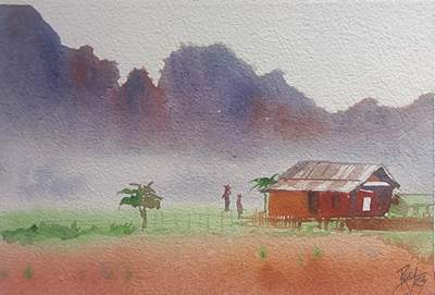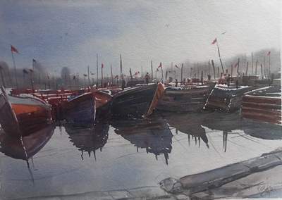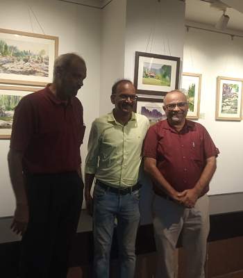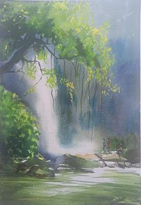 The Present series in Water colour on paper depicting serenity   in Nature exemplifies subtle nuances of the tranquil beauty of the natural world.  He has been   deeply inspired by ever changing season, the play of light on water and the majestic beauty of mountains and forests.  He has artistically revealed the ever changing moods and the majesty of the environment from the soft glow of dawn to the vibrant hues of dusk. His artistic use of colour, light and dimensionality and aesthetic panorama that enable a viewer to delve into the heart of the landscape and enjoy its subtleties in relevant perspectives of visual art. He has aptly given prominence to serenity of natural world and its omnipresent grandeur in the proper perspectives of visual art. His works connect the viewers to details of the untouched and serene worlds in the universe.